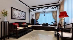 客厅采用了深色木质家具,搭配古典元素,如屏风、花瓶等,营造出一种古朴典雅的氛围。沙发背景墙则是一幅山水画,让人仿佛置身于山水之间。